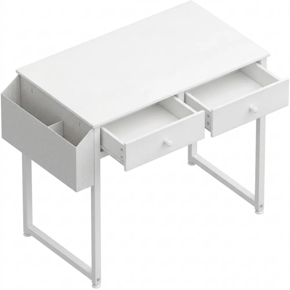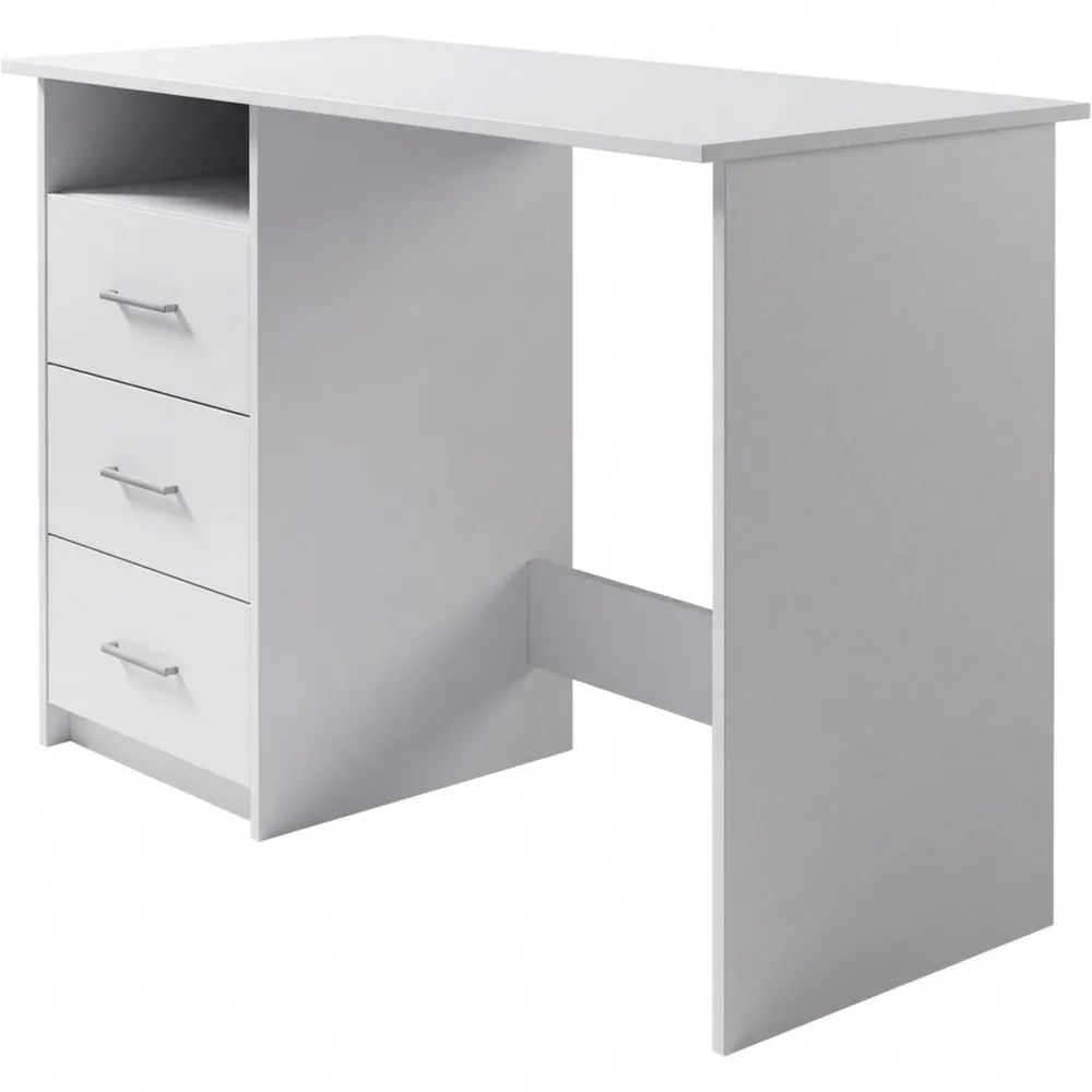 Kompakter weißer Schreibtisch mit Stauraum und Schubladen für Büro oder Home-Office