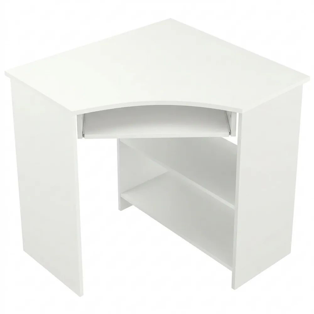 Kompakter Eckschreibtisch mit Tastaturauszug und Ablageflächen, Weiß, 83 x 76 cm