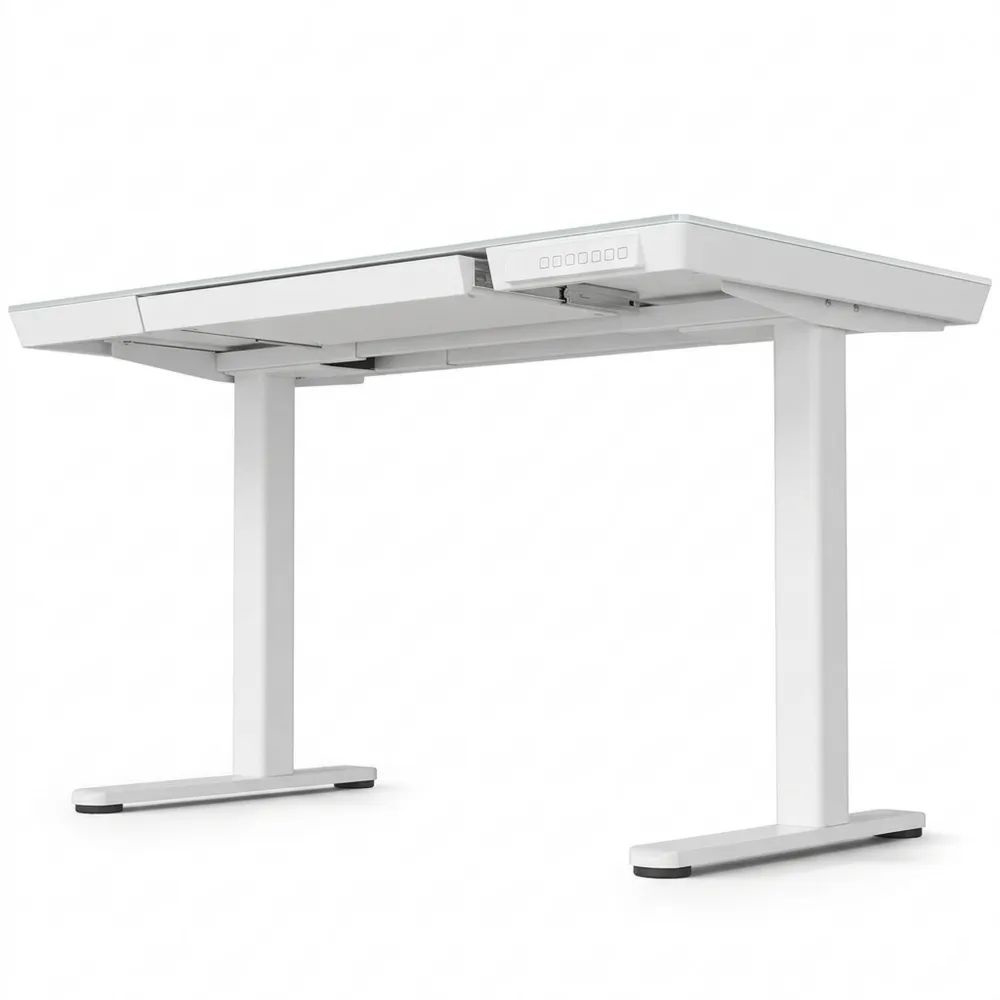 Elektrischer Höhenverstellbarer Schreibtisch mit Glasplatte 120x60 cm, Leiser Motor, Ergonomisches Design, Ideal für Homeoffice und Büro