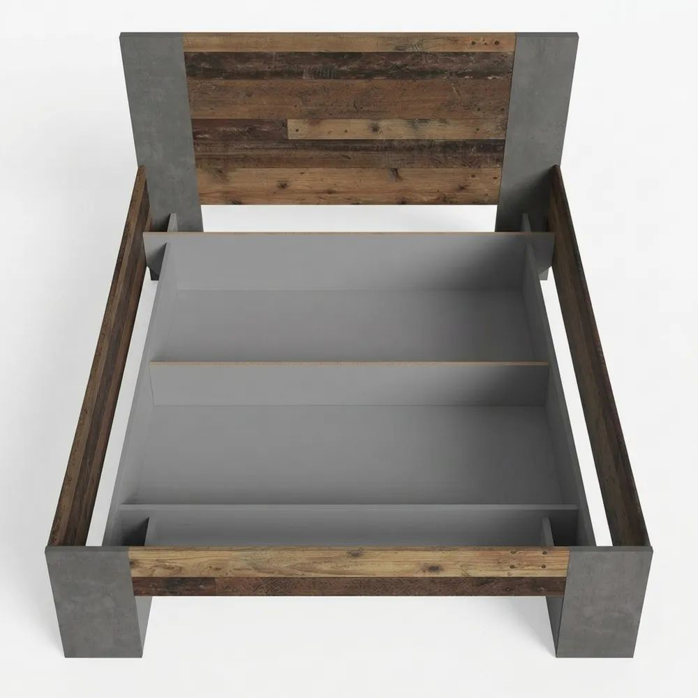 Jugendbett mit 140 x 200 cm Liegefläche, Holzwerkstoff in Vintage-Holzdekor und dunklem Beton