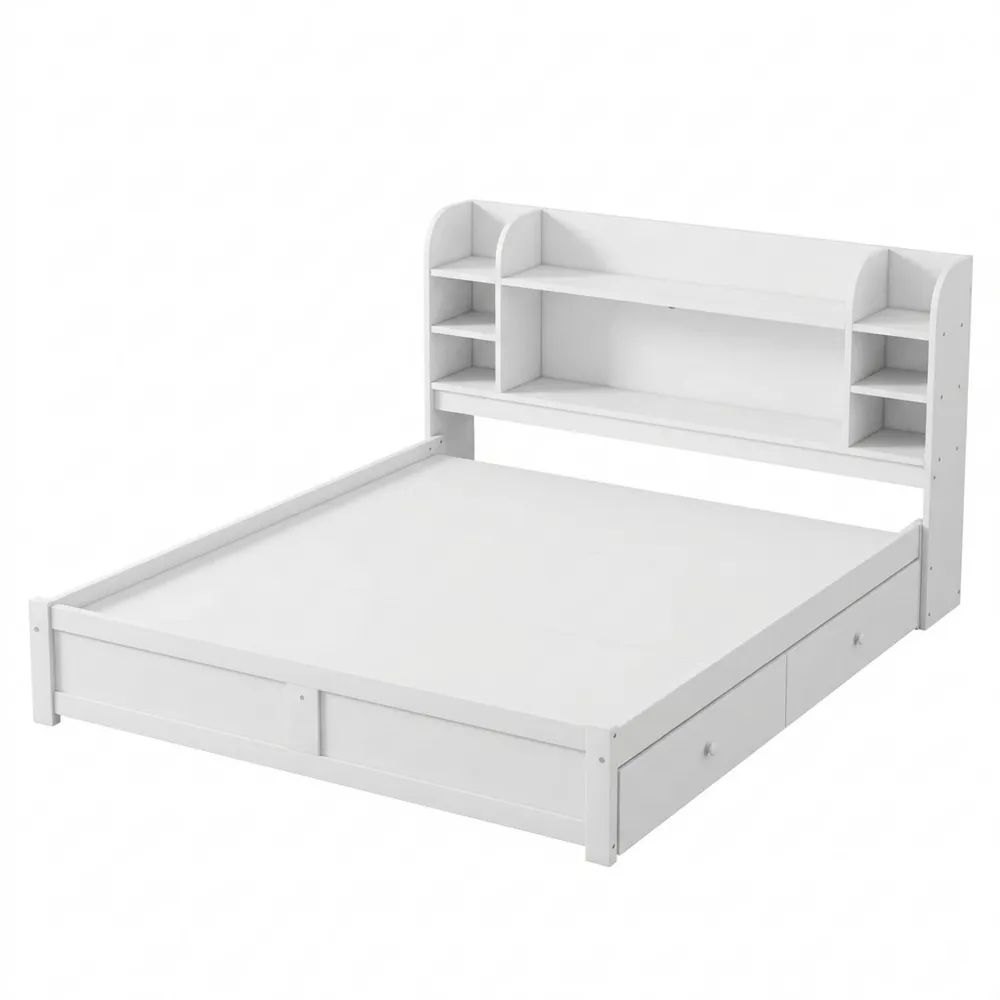Holzbett 180x200 cm mit Stauraum und Schubladen, Weiß