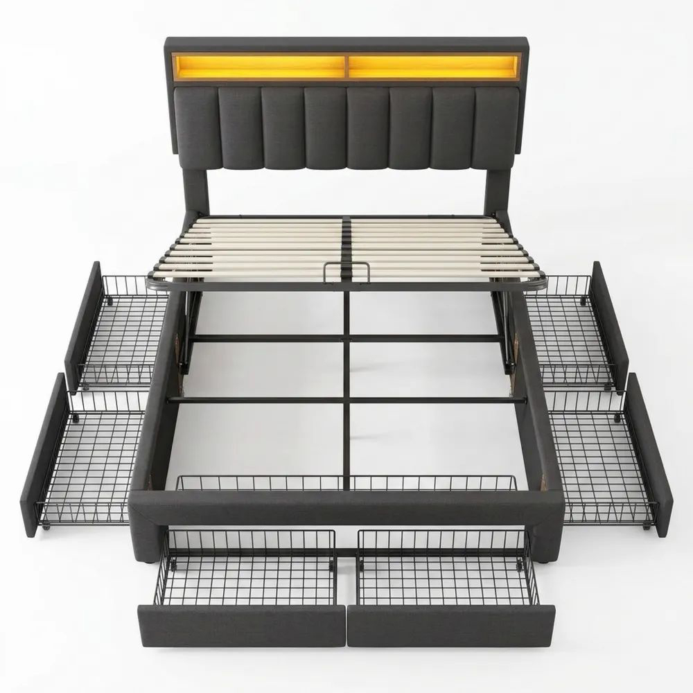 Modernes Polsterbett 140x200 cm mit Stauraum und LED-Beleuchtung