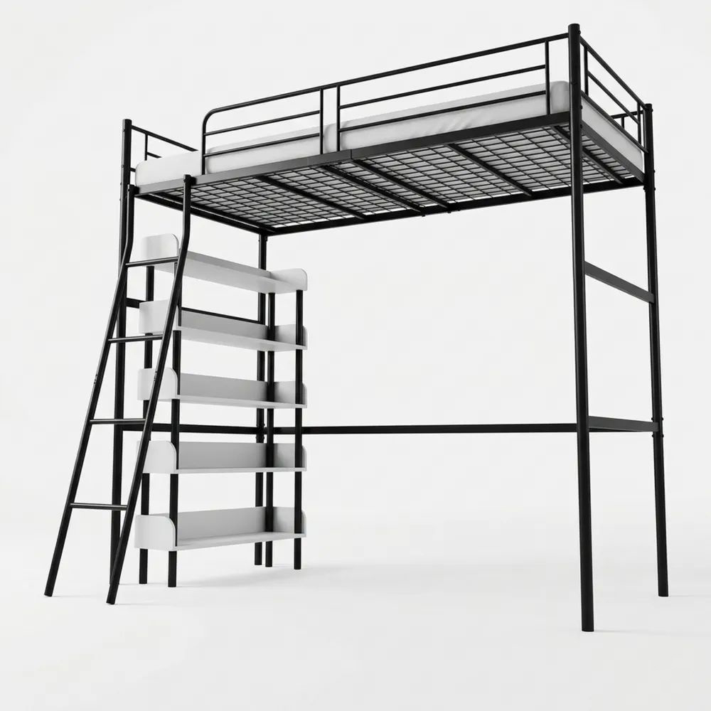 Metall-Hochbett 90x200 cm mit Schutzbarriere und Leiter, ideal für Kinder und Jugendliche, Schwarz