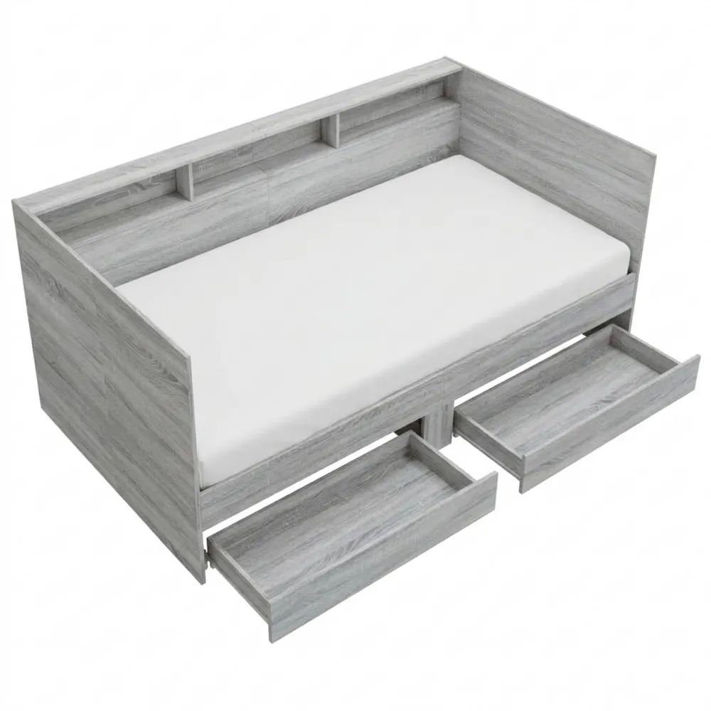 Einzelbett mit Stauraum und Schubladen, 100 x 200 cm, Grau